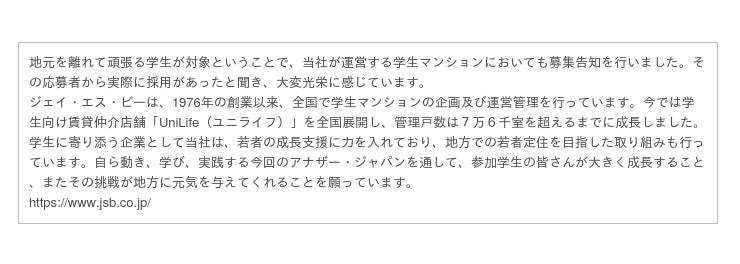 三菱地所株式会社と株式会社中川政七商店が進めている、学生が本気で商売を学び実践する47都道府県地域産品セレクトショップ「アナザー・ジャパン」は、本プロジェクトに携わる学生を支える「企業サポーター」の正式募集を、2022年4月20日(水)より開始いたします。同時に、企業サポーターとして、以下8社からの支援が決定したことをお知らせします。(2022年4月20日時点)