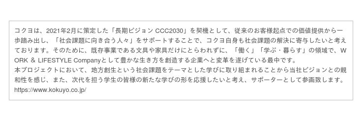 本プロジェクト検討初期段階でもサポーター制度の構想はありましたが、2020年12月の本プロジェクト対外公表直後より、「自分が学生だったら、絶対に参加したかった」「社会人の先輩として何かできることはないか」など、複数社から支援希望の声をいただき、正式に企業サポーター制度の発足に至りました。新たな学びの形に賛同する企業は続々増えており、現在も多数の企業・団体と協議中であり、新たにサポートが決まった企業については、当プロジェクトの公式Webサイト等で順次公表して参ります。
