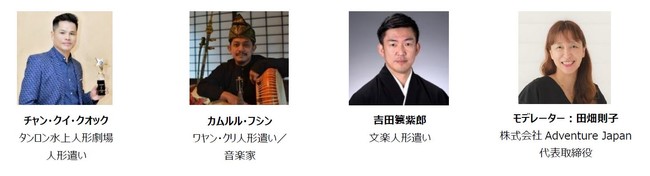 ベトナムの水上人形劇、マレーシアのワヤン・クリ、日本の文楽の三国三者による鼎談。伝統芸能を生業に選び、歴史ある文化を次代に受け継いでいくことの意味について、各自の芸能を紹介しながら語り合います。