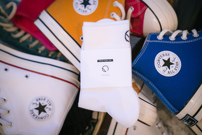 日本では「ALL STAR(オールスター)」「「Chuck Taylor」「CT70」「Chuck Taylor 70s」等の名称で知られているスニーカー。年齢問わずファッショニスタ達には欠かせないスニーカーとして、今なお人気を博しているチャックテイラー(Chuck Taylor)のハイカット専用に設計をした靴下です。