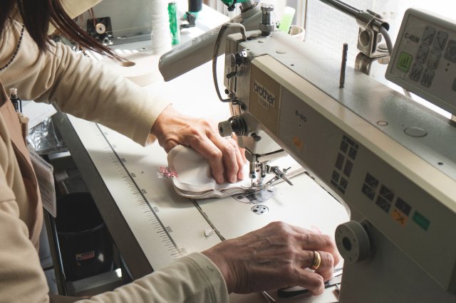 『HEINEL』のインナーは、大阪門真市で65年以上の歴史を持つ老舗縫製工場「布もの工房 北次株式会社」にて製造しています。同社はバッグやポーチなどの服飾雑貨から、インテリアや医療介護分野など、あらゆる布製品の製造を得意とする縫製工場です。
