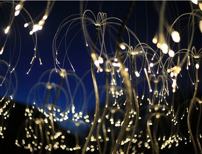 24本の光ファイバーケーブルから成るアートワークは「ファイアフライ-蛍-」と呼ばれ、周囲の自然に溶け込みながら18万個もの光の粒となってHANAZONOの大地を彩ります。