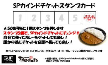 高校生以上の方々は、500円でカインドカレーを購入でき、500円につき1個スタンプを押します。5個スタンプがたまると、「SPチケット」に変更もできます。