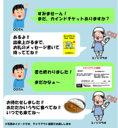 チケットが無くならないように、フードロス食材を使う事で原価を抑え、売上の一部をチケット代に回すことで、チケットを出せる仕組みにしております。クラウドファンディングでのご支援を頂き、ゆくゆくは、高校生もカインドチケットの対象にしていきます。