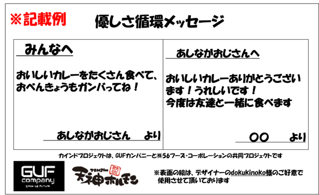 カインドチケットを購入して頂いた方にも、子供たちへ「おいしく食べてね」などのメッセージを書いて頂ければ幸いです。
