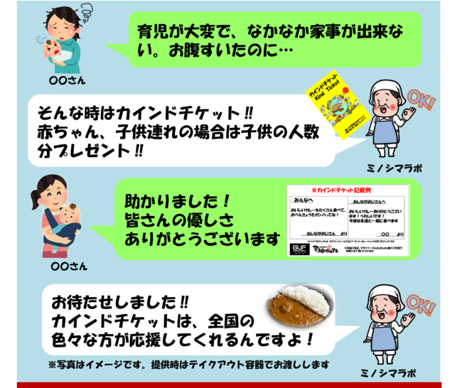 「カインドチケット(Kind Tickt)」により優しさの詰まった「カインドカレー(Kind Curry)」を子供に無料で提供することで、働く親の家事の負担を減らし、子供はしっかりと栄養のある食事をとることが出来る環境が作れます。カレーを食べれば食べるほど、環境や社会に優しいそんなプロジェクトを行います。