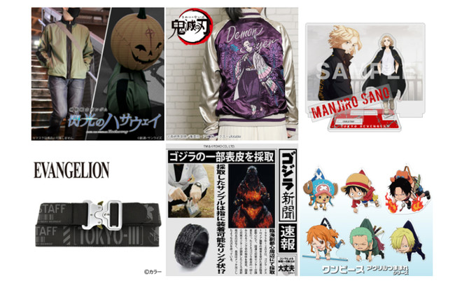 作品好き・キャラクター好きをフックに子供から大人まで幅広いファンに向けて、Tシャツを中心にアウターやアクセサリー、キーホルダー、雑貨などニーズに合わせた多彩な商品を展開。