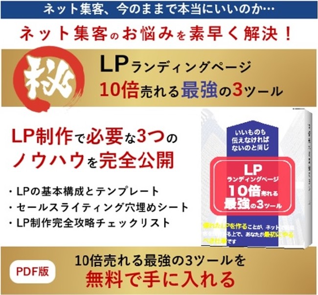 電子小冊子「LP10倍売れる最強の3ツール」無料プレゼントのご案内