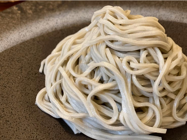 蕎麦独特の食感、のどごしの再現は想像以上に大変なものであり、何より蕎麦を楽しむ上で外せないのが芳醇な蕎麦の香りこの再現には数え切れない試作を繰り返しました。