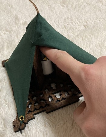 ■ 生地部には実際のテントと同じT/C 素材を使用し、質感や光の透け方まで忠実に再現しています。