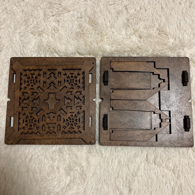 ■ 本体部分にはMDF 材を使用し、ウォールナット系のワックス塗装を施す事でオシャレキャンプにも