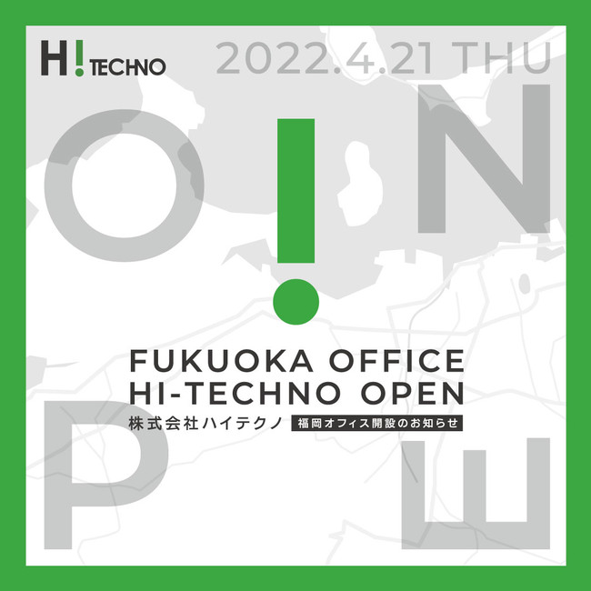 株式会社ハイテクノ(本社:兵庫県神戸市西区池上1丁目13-1)は、九州山口における業務拡大のため「福岡オフィス」を開設し、本日4月21日(木)より営業を開始したことをお知らせします。
