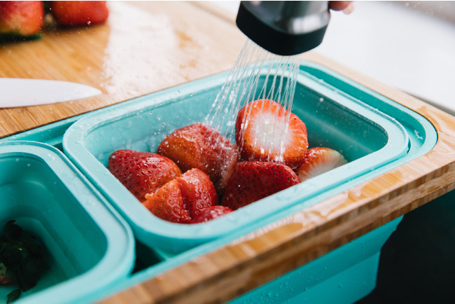 料理の準備が手際よくできるオールインワン多機能まな板セット、時短・省スペースに貢献します。