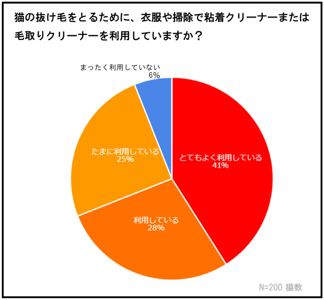 猫の抜け毛をとるために、94%もの人が粘着クリーナーなどを利用していると回答。