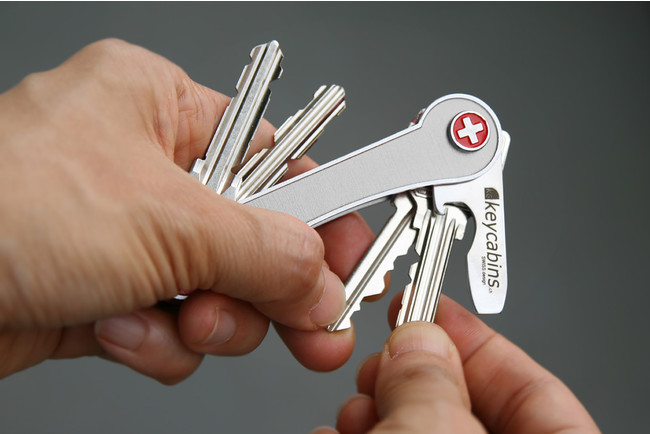 keycabinsなら、スイス・アーミーナイフのように複数の鍵をスタッキングして収納することで、ジャラジャラした鍵束がスッキリした見た目になり、スマートに持ち歩くことができます。