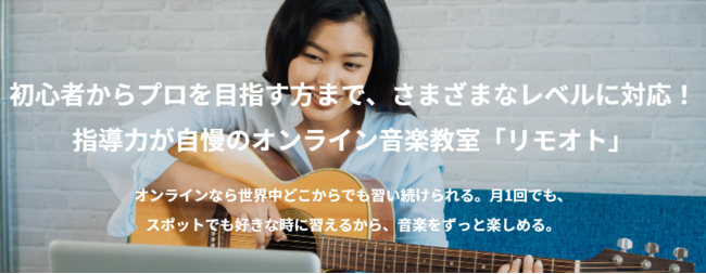 そのような中、IT技術の発達によりパソコンやスマホさえあればオンラインでコミュニケーションが取れる環境が整ってきたこともあり、「もっと多くの人に楽器の楽しさを伝えたい」という想いをかなえるため、2021年4月にオンライン音楽教室『リモオト』を立ち上げました。