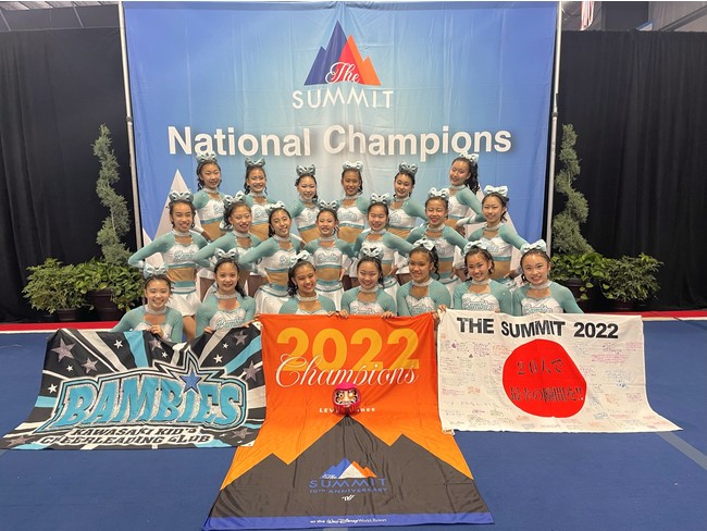 川崎キッズチアリーディングクラブ BAMBIES(以下「BAMBIES」とする)は、2022年4月28日~5月1日(現地時間)、米フロリダ州オーランドにあるWalt Disney World(R) Resortにて行われた「The Summit Championship 2022」の U17 Level3部門に出場し優勝しました。これに伴い、7月17日に祝勝会を行う運びとなったことをご報告いたします。
