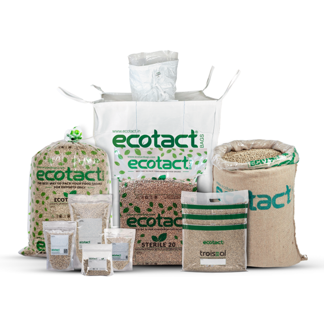 Ecotactは、コーヒー生豆、ココア、紅茶、砂糖、米、トウモロコシ、小麦、キヌア、マカダミアナッツ、その他の世界市場向けの、農業ベースの製品向けの高品質な高気密性包装ソリューションです。
