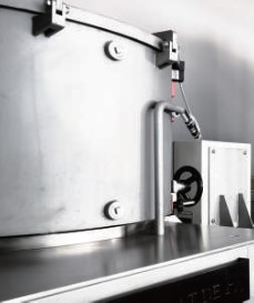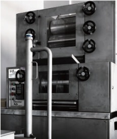 辻口がこだわったカカオのアロマを最大限に引き出すショコラ専用のボール型ローストシステム。ベルトコンベアで運ばれたカカオ豆は、それぞれの特徴に合わせ、風量や火力などを細かく調整しローストしていきます。