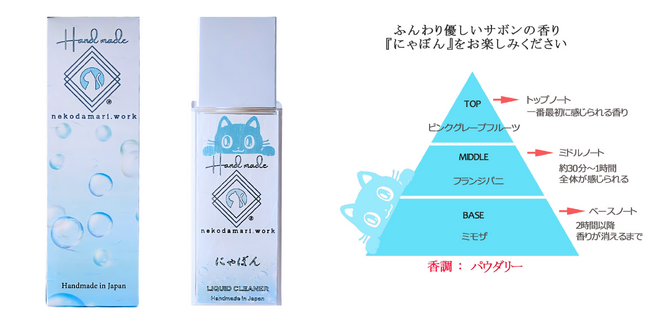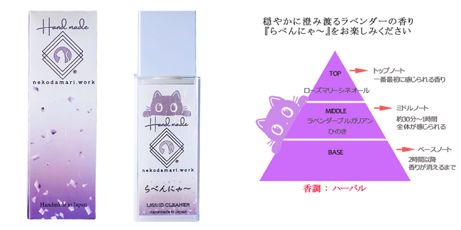 ねこだまり工房株式会社(愛知県名古屋市熱田区一番2丁目24-3)は、素材と製法にこだわった、人にも、モノにも優しいリキッドクリーナー『らべんにゃ~』『にゃとらす』『にゃぼん』の3種を2023年11月23日より、ねこだまり工房直営オンラインストア(https://nekodamari.work/products/liquid-cleaner)他にて発売いたします。