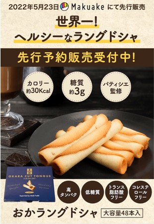 5月23日、合同会社Earnestがクラウドファンディングサイト「Makuake」にて低カロリー・低糖質の巻ラングドシャ「おかラングドシャ」が先行販売を開始、わずか6時間で支援金額50万円を達成した。