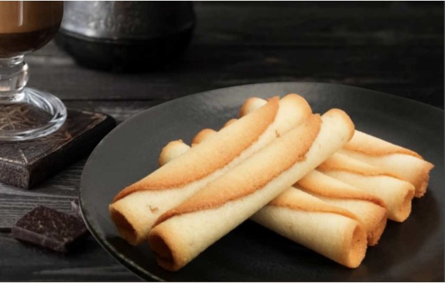 従来のおからパウダーでは製造過程でボロボロになって崩れてしまうため、おからを巻きラングドシャに適合するようにパウダーを選定し調整するのにかなりの期間と費用を費やした。