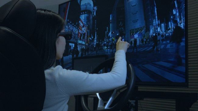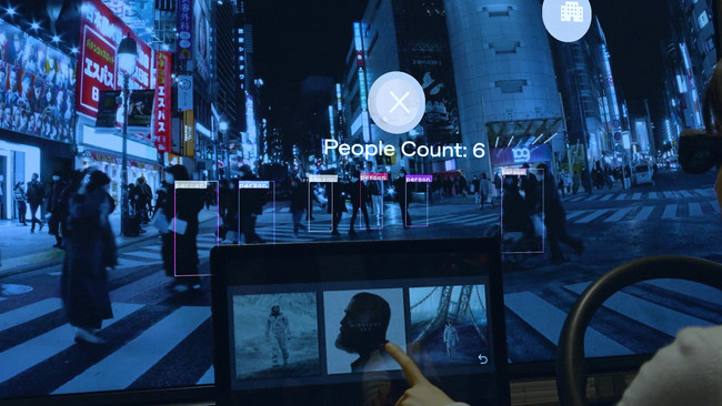 ARグラスを利用した体験デモ。デジタルコンテンツはどこでも調整と更新が可能で、ARグラスを装着した新しい体験を演出します。また、屋外にも対応し、画像認識技術と組み合わせる事で、リアルタイムに情報を取得する事が将来的に可能です。