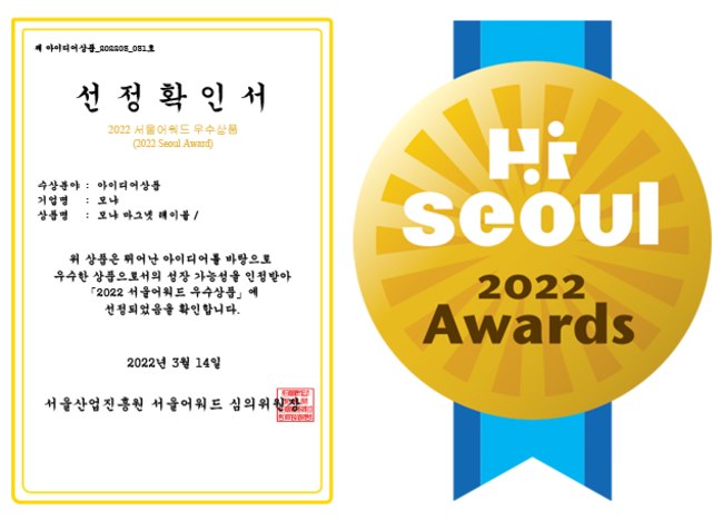 ソウル市中小企業支援機関「ソウル産業振興院」が主催する優れたアイデア商品に贈られる、韓国の有名なデザイン賞「ソウルアワード」を2022年に受賞しました。