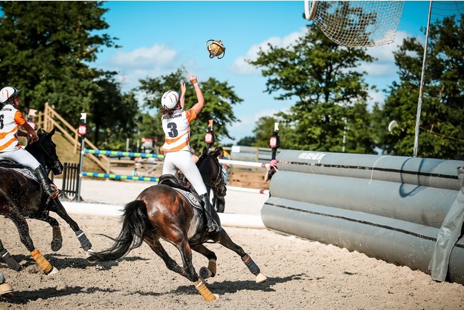 “ホースボール”とはその名の通り「乗馬を行いながら球技を行うスポーツ」であり、人馬一体となり猛スピードで激しくボールのやり取りをするところから「ケンタウロスのラグビー」と呼ばれたり、ハリーポッター作品に登場するスポーツになぞらえて「馬のクイディッチ」と例えられることもある、新世代エクストリームスポーツです。