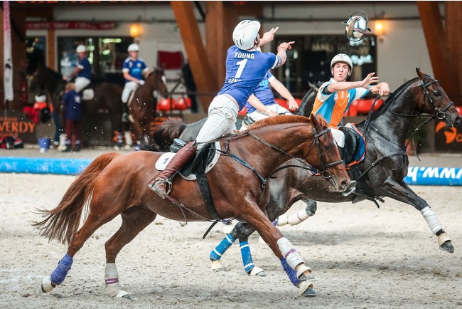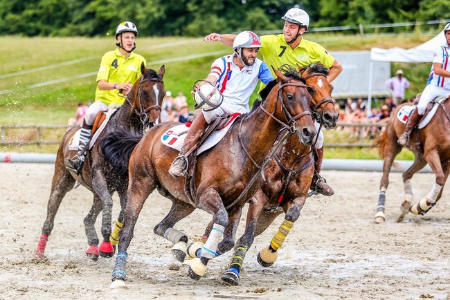 歴史的にはアルゼンチンの国技のパトから派生したもので、フランスで現在の競技の形になり、現在は欧米を中心に世界28カ国、競技人口約50,000人に楽しまれております。ほとんどの球技と同じく、より多くの点を取ることを目的に、4騎対4騎で馬に乗ったまま、皮の取っ手のついた特殊なボールを扱いながら、ドリブル・パス・タックル・シュートをしてゴールを目指すのが基本的なルールになります。