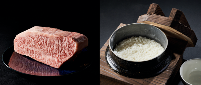 当店では、A5ランクの黒毛和牛を炊きたての釜炊きごはんと一緒にご堪能頂けます。