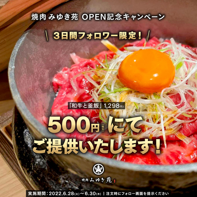 6/28(火)~6/30(木) フォロワー限定で、新商品「和牛と釜飯」1,298円を500円でご提供!(※税別)