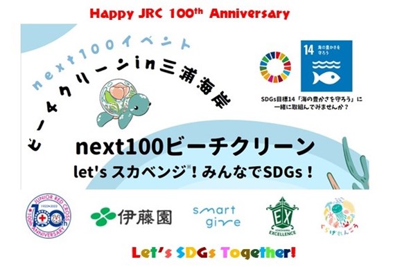 「next100」は、より良い未来を前向きに創っていきたいという想いを同じにしたより多くの仲間と一緒に継続的に社会課題やSDGsの実現に取り組むプロジェクトです。日本赤十字社神奈川県支部の青少年赤十字高校生メンバーも一緒に行う「ビーチクリーン@三浦海岸」は、その想いが形になった初の取組みです。