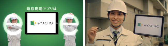 建設現場で活躍するデジタル野帳「eYACHO」を体現!絶妙な掛け合いと”eポーズ”にも注目!