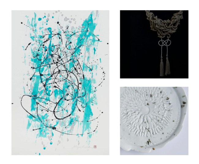 今回の展示では、書道家の海老原露巌氏、陶芸家の田村一氏、装飾具作家の保坂剛志氏、3名の作品展示および販売をいたします。それぞれの才能が重なり合い、織りなす対位法のような空間をコンセプトとしています。