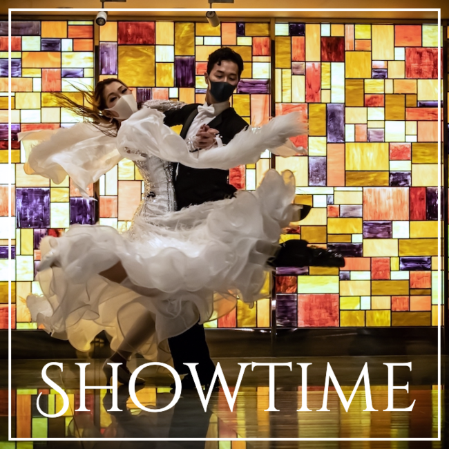 ダンスタイムの合間に、社交ダンスのトッププロである若代愼&辰巳友莉亜ペア(統一全日本ファイナリスト)によるダンスショーを予定しております。