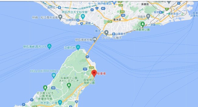 阪神高速、第二神明道路より神戸淡路鳴門自動車道に乗りかえ淡路I.C.を降りて国道28号を南へ5分