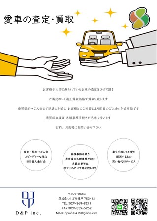 現在、数多くのお車買取り業者があり、価格のみを重視してしまいがちです。その様な中で、私共は価格のみならず、これまで乗られてきた大切なお車を最後まで手放した後でも安心した生活をお送り頂く事に目を向けて、当サービスを実施しております。