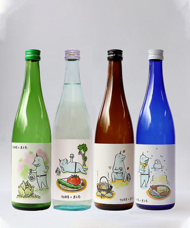 デザインは弊社の為のオリジナルキャラクターと季節の料理や食材、風景で構成しました。キャラクターに公式の名前はないが、弊社では“ほまれくん”と呼んでいる。季節をイメージさせる色のボトル、キャップで展開し、四季に合わせた味の酒を仕込みました。