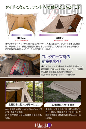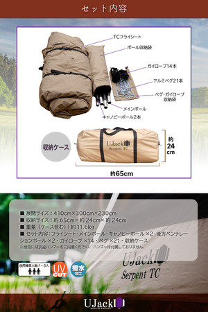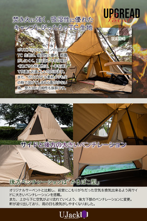 UJackの大人気テントシリーズSerpentに新たにTC生地バージョンが追加。よりワイド設計&機能追加で快適性が格段に上がりました。