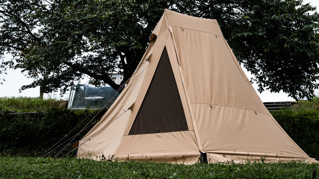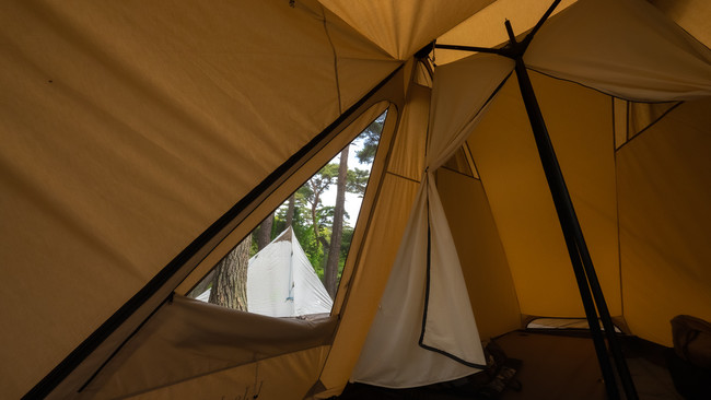 全高230cmの高い室内はTC生地を使用したフライシートと、同じくTC生地を使用したインナーシートの2シートから構成される。TC生地はポリエステルとコットンを独自比率で混紡しており、高い遮光性と湿度コントロールに優れる。またポリエステル生地と比較して火の粉などへの耐性も増しており、近年TC生地をキャンプで使用するユーザーは急増している。