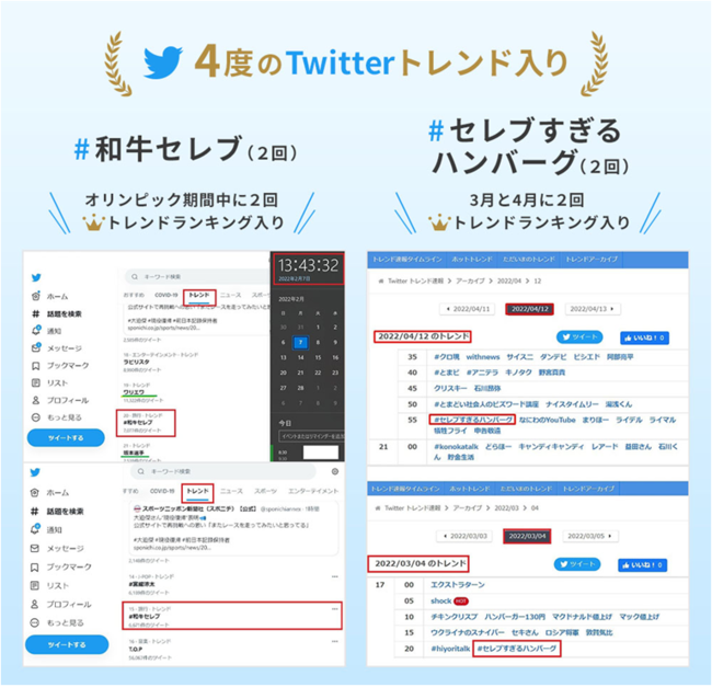 Twitterで#和牛セレブで2回。#セレブすぎるハンバーグで2回。