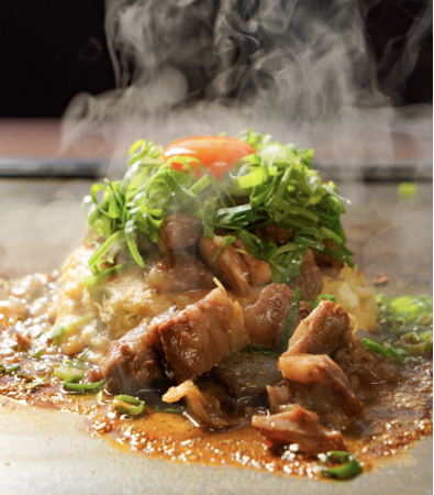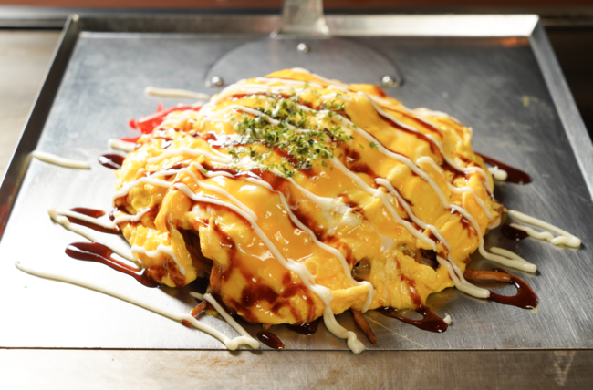 鉄板の上にソースの香りが広がりそこにとろりとしたふんわり濃厚卵の旨味を閉じ込めた逸品。