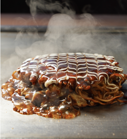 お好み焼も食べたい、でも焼きそばも食べたい、そんな欲張りなお客様のためモダン焼きにしました。まさに一石二鳥な逸品。