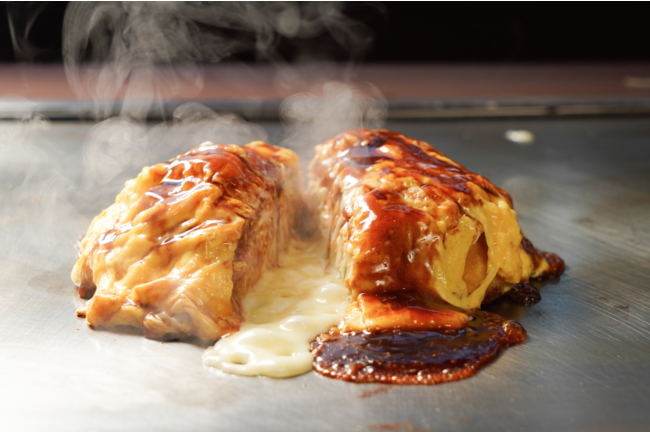 こだわりの「まんげつ濃厚卵」のふわトロ玉子で包み、たっぷりとろーりとろけるチーズが入った逸品。