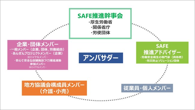 この問題の解決のため、まず、労働災害を自分ごととしてとらえ、対策すべきものとしてとらえていく機運の醸成を図り、全てのステークホルダーが一丸となり、顧客や利用者だけでなく、従業員の安全を第一に掲げて取組を進めていくことを目的として、「従業員の幸せのためのSafer Action For Employees(SAFE)コンソーシアム」を組織する。