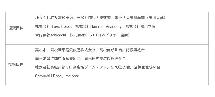 Setouchi Art Jack2022は、2022年6月に高松市が市内観光関連産業の活性化のために公募した「高松市サステナブルな観光コンテンツ促進事業補助金」に採択されました。地域活性化にリアルのアートのみならず新技術を活用しデジタルアートを取り入れたこと、地域の公共交通機関、飲食店、教育機関、アーティスト、メディア、まちづくり団体などを広く巻き込んでいることを評価・期待されています。