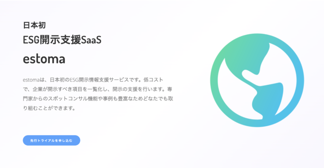 「人類が永続的に繁栄できる地球環境の維持を支援する」をミッションにする株式会社estomaは、日本初※1のESG開示支援・管理SaaS「estoma」のベータ版をリリースしました。estomaでは、プライム市場の企業が今対応を迫られている外部評価機関対応や非財務情報の開示を効率的に行えます。