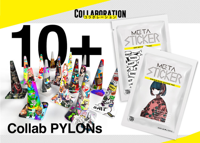 その第一弾として人気NFTクリエイターおにぎりまん氏とのコラボが発表され、初回MInt分のMETA PYLONを保有するユーザーへ同氏の作品がランダムに封入されたオリジナルステッカーパックが配布されます。