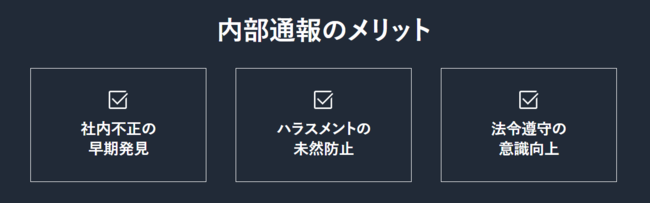 このツールの導入により、社内窓口設置で発生する会社の負担を軽減し、同僚や上司の不正を発見した社員が内部通報しやすい体制を簡単に作ることができます。